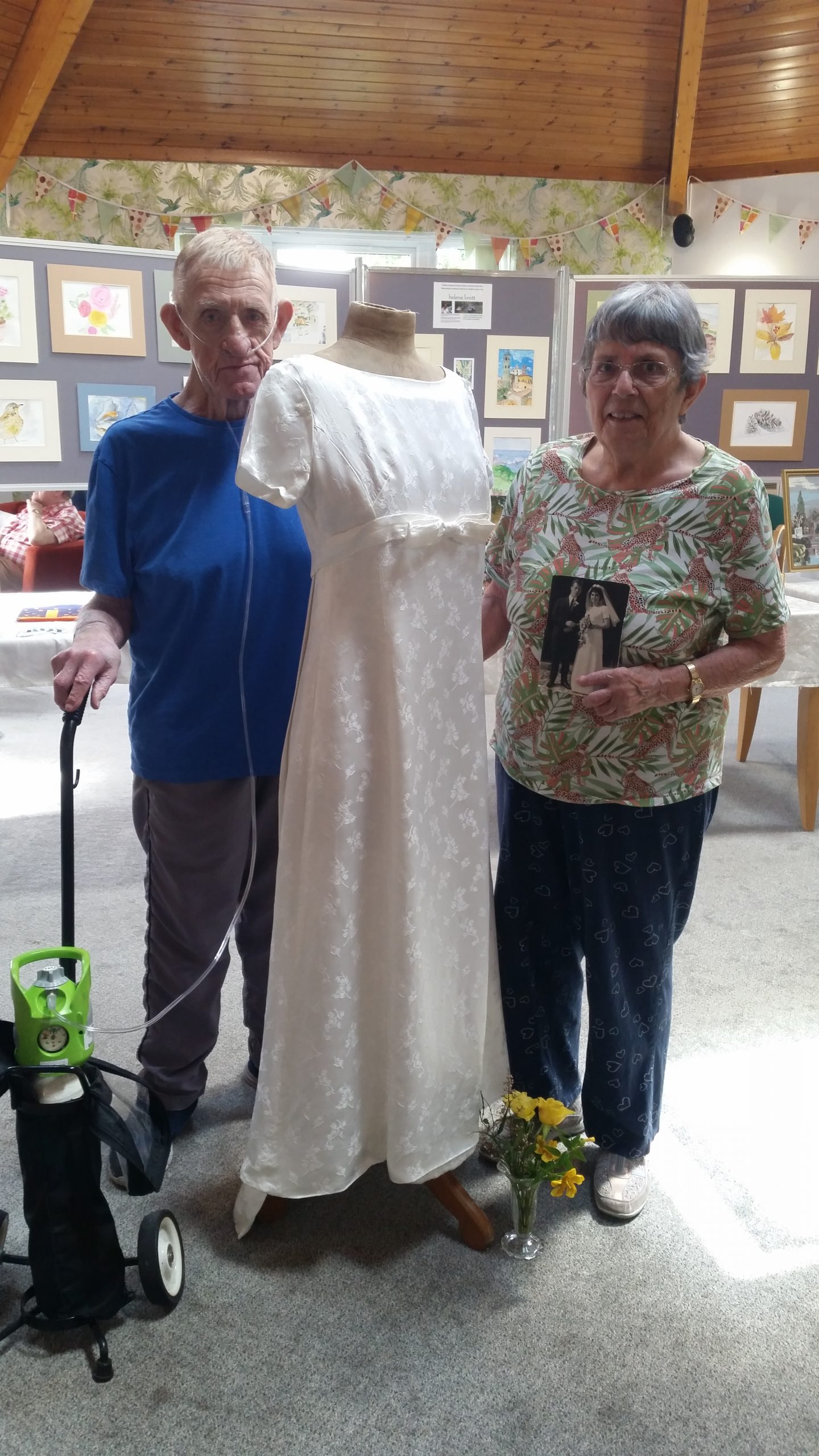 - Our residents showcasing the bride’s handmade wedding dress. They celebrate 58 years of marriage!