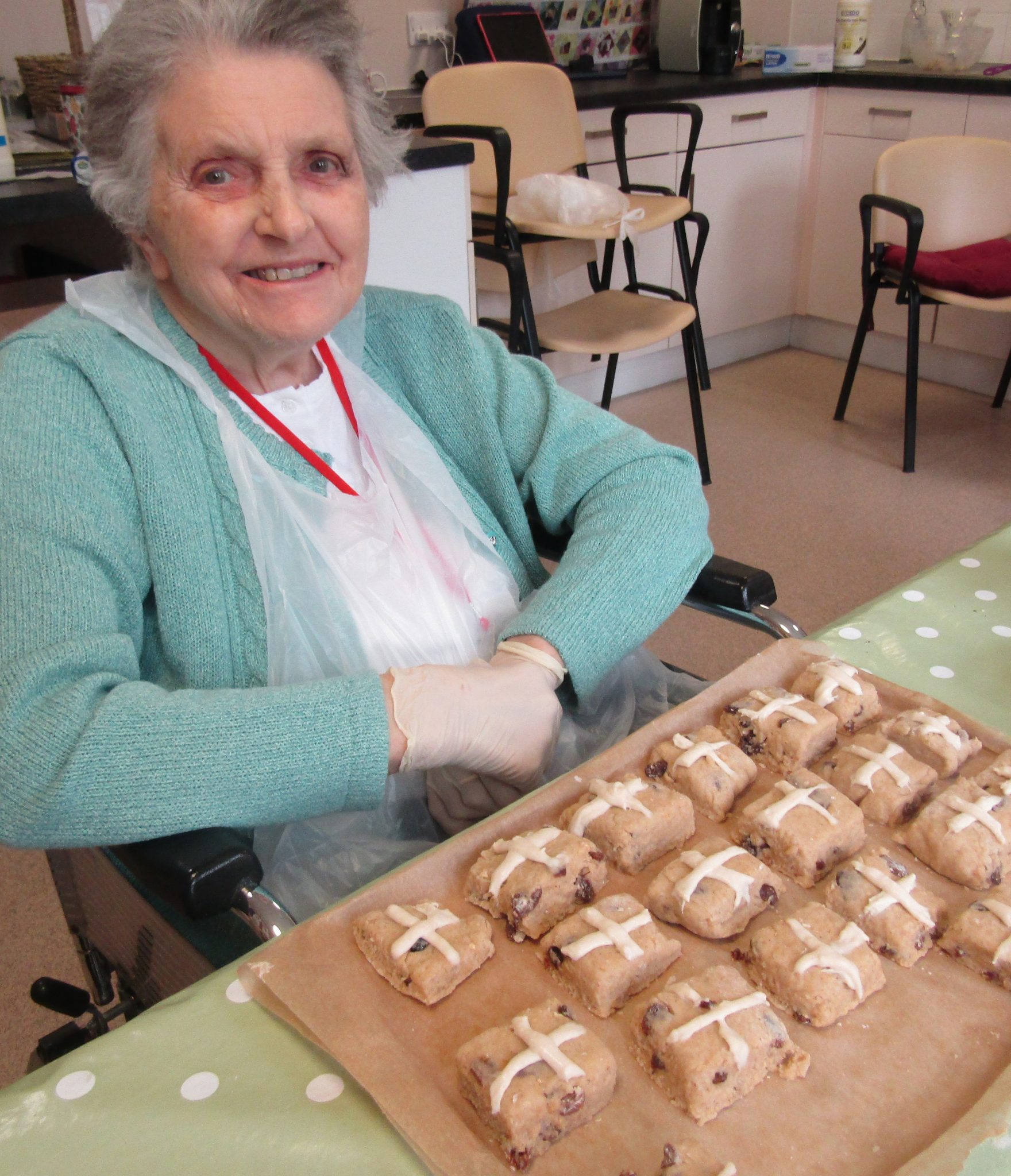 Residents thoroughly enjoyed watching chicks hatch at Easter and making hot cross buns.